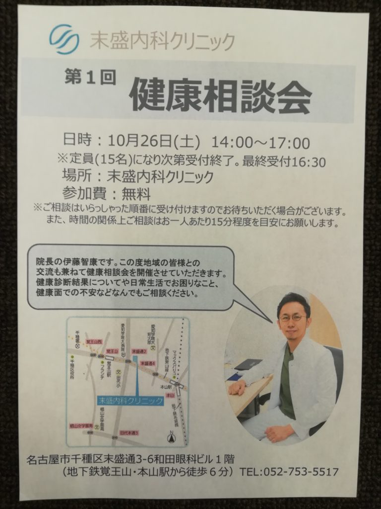 いつもテソラ治療院をご利用いただいている『末盛内科クリニック』の伊藤先生が、健康相談会を開催されます。