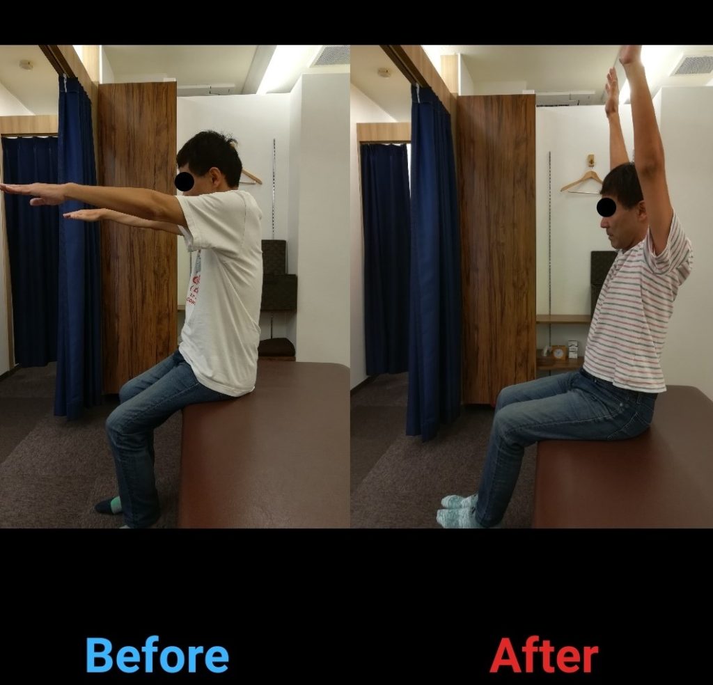 この方のような状態だと、痛みや可動域が改善するのも時間がかかることが多いです。