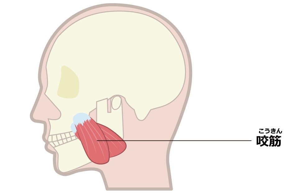 食いしばると、ほっぺの筋肉(主に咬筋)こめかみの筋肉(側頭筋)に力が入ります。