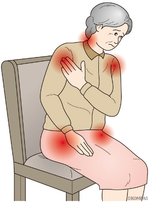 60歳以上の方に起こる原因不明の病気で、体幹に近い部分、肩から上腕、首、お尻~太ももなどの筋肉の痛みやこわばりが出てきます。