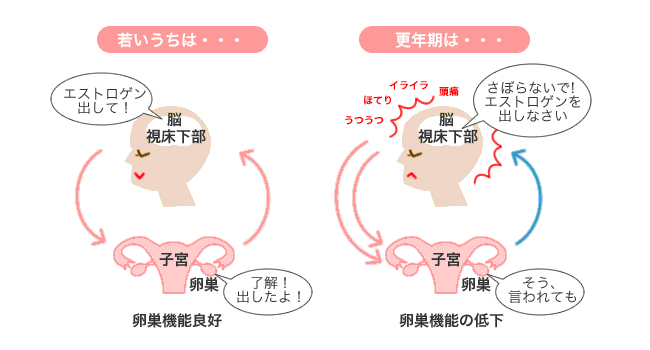 それは、自律神経に指令を出すところ(中枢)と女性ホルモンを分泌するように