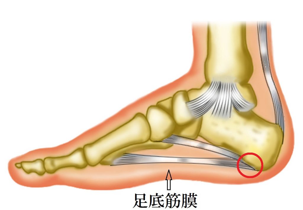 そのため、足底筋膜に負担がかかり硬くなると、踵に痛みが出ることがあります。